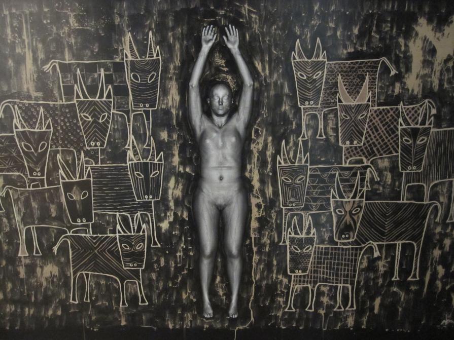 In 2011 I moved to Luanda, Angola and since moving to Sub-Saharan Africa I have been motivated by the symbolic resonance of the CT dataset, signifying privilege both in terms of wealth and access to digital technology. I returned to the images of Melanix that radiology software first offered: a scanned body floating in a black vacuum, a weightless void ripe for dreams, nightmares, superstitions, suspicions, myths and rumours which I was able to bleach and paint into the black. In CONFUSAO the anonymised scanned body acts as an avatar performing/presenting/embodying the thoughts and ideas that haunt me.