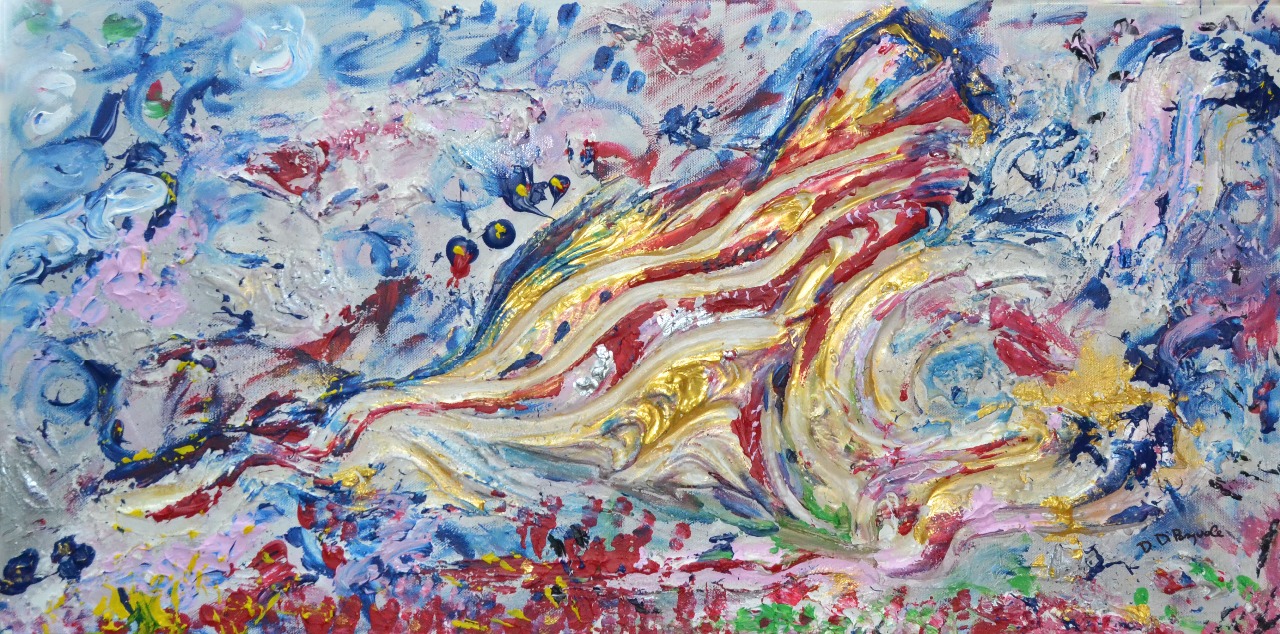 Apprezzo inoltre questa innovativa tecnica astratta ma allo stesso tempo materica nella sostanza di colore applicato.