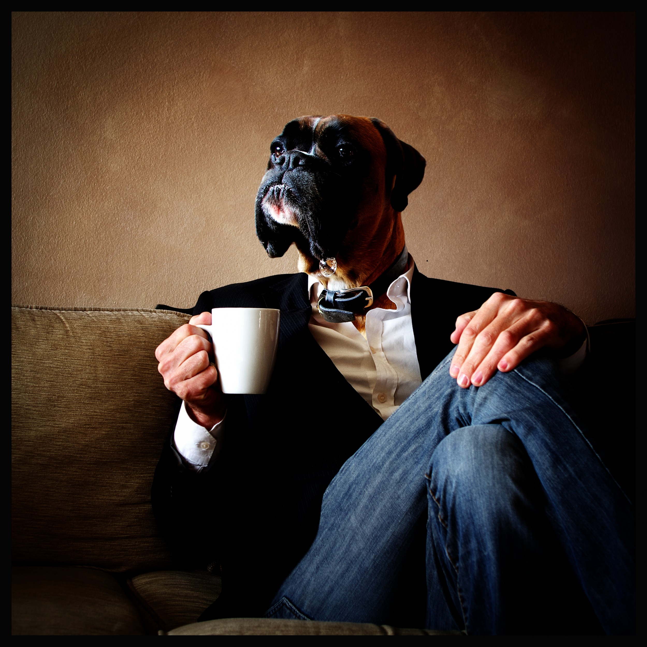 Lo spunto di questo autoritratto è lo scambio osmotico che avviene tra l'uomo e il proprio animale in questo caso il cane, una traccia che l'uno lascia nell'altro fino ad avvicinarne alcuni comportamenti.