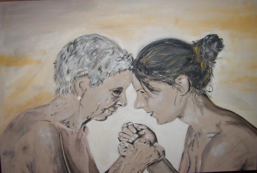 Questo dipinto è pura poesia che racconta di emozioni grandi e coinvolgenti: l'amore materno e filiale, la pietà, la commozione dell'incontro, dopo il distacco lungo e sofferto per le parole pensate e non dette e per quelle dette e non pensate. L'emozione che trasmatte questo tuo lavoro del cuore è profondissima quanto la gioia di un grande incontro o lo strazio di un penoso addio.