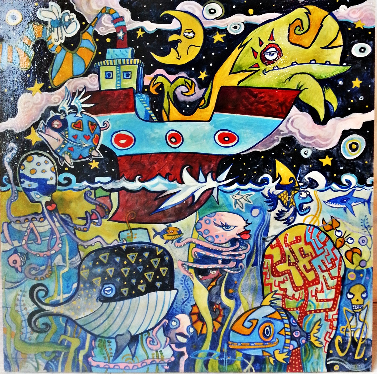 Balene stanche Maialini in pigiama e diavolerie varie Pittura, Felicità, Fantasia / Visionario, Illustrazione, Animale, Tecnica mista, 40x40x5cm Tavola / Legno Tecnica mista balene animali maialini studio su tavola cm 40x40....progetto per un lavoro da realizzare su tela in formato 100 x 100 Inserita 11 anni fa 6 Mi piace Non piace più 6 Commenti 240 Visite Condividi Facebook Twitter Google + Piace a 6 Maria Grazia De Cubellis Art lover - Firenze EMMANUELA Artista - Biella Imperato Art Artista - Roma Maristella Angeli Artista, Pittore - Macerata Laura Menaballi Fotografo, Pittore - Lecco Tanya Bartolini Premium Artista - Milano Inserisci commento Commenti 6 11 anni fa sonia dolio Artista La Fantasia regna sovrana senza limiti e non si finisce mai di guardare... Bravo Max !!! 11 anni fa giulio micheletti Artista bella,un mare inquinato di assurdità piacevoli ed originali,donando all'immagine una certa importanza grafica,che racchiude tutti i concetti in un cancan di bellezza,come dire incasinato ma attraente,bravo i miei complimenti 11 anni fa Daniele Consani Artista bello esagerato..lo puoi rifare anche 200x200!!! 11 anni fa Maristella Angeli Artista, Pittore Di forte impatto! 11 anni fa Lino Bianco Artista Un mondo fantastico che ci riporta con nostalgia all'infanzia. Bravissimo. ciao, Lino 11 anni fa luca ferrise Artista Bella Inserisci commento E' necessario effettuare il login o iscriversi per inserire il commento Login