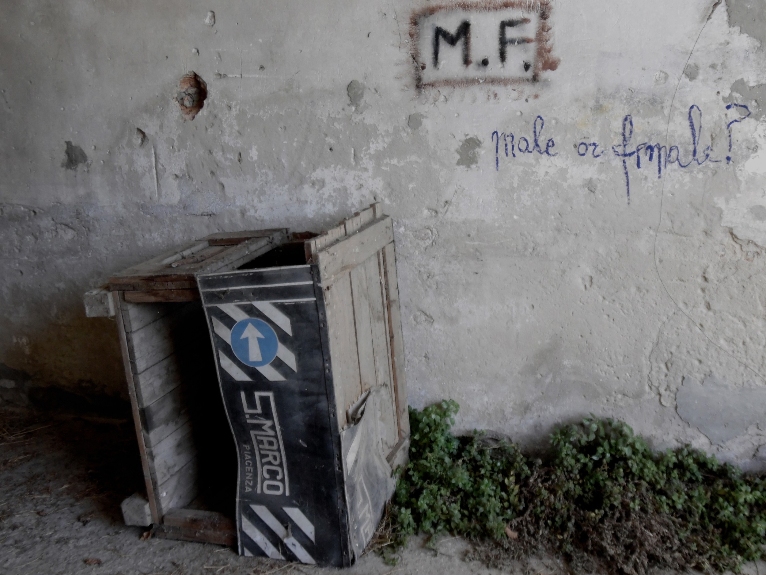 Home è un progetto politico-sociale perché le stanze della casa di tutti, che apparentemente sembrerebbero disabitate, in realtà ci fanno pensare che qualcuno ha in passato temporaneamente vissuto in quei luoghi come unica possibilità, incidendo sulle mura anche le proprie iniziali, MF, che ho riportato nella prima immagine e dove ho aggiunto la scritta Male or Female? aprendo un dialogo con l’ interlocutore sconosciuto.