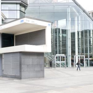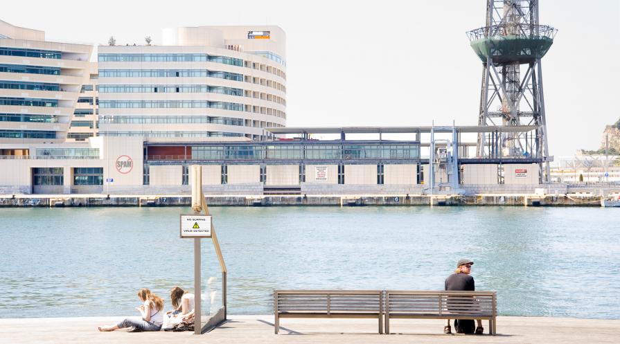 La foto rappresenta un paesaggio preso dal futuro prossimo in cui, rassegnati all'impossibilità di tenere pulita l'aria, serenamente ci muoveremo abbigliati con le tute anti-contaminazione. Avremo però a disposizione un potente anti-virus per ambiente, attivabile sul nostro telefonino inquadrando il QR code, che ci dirà quanto saremo contaminati.