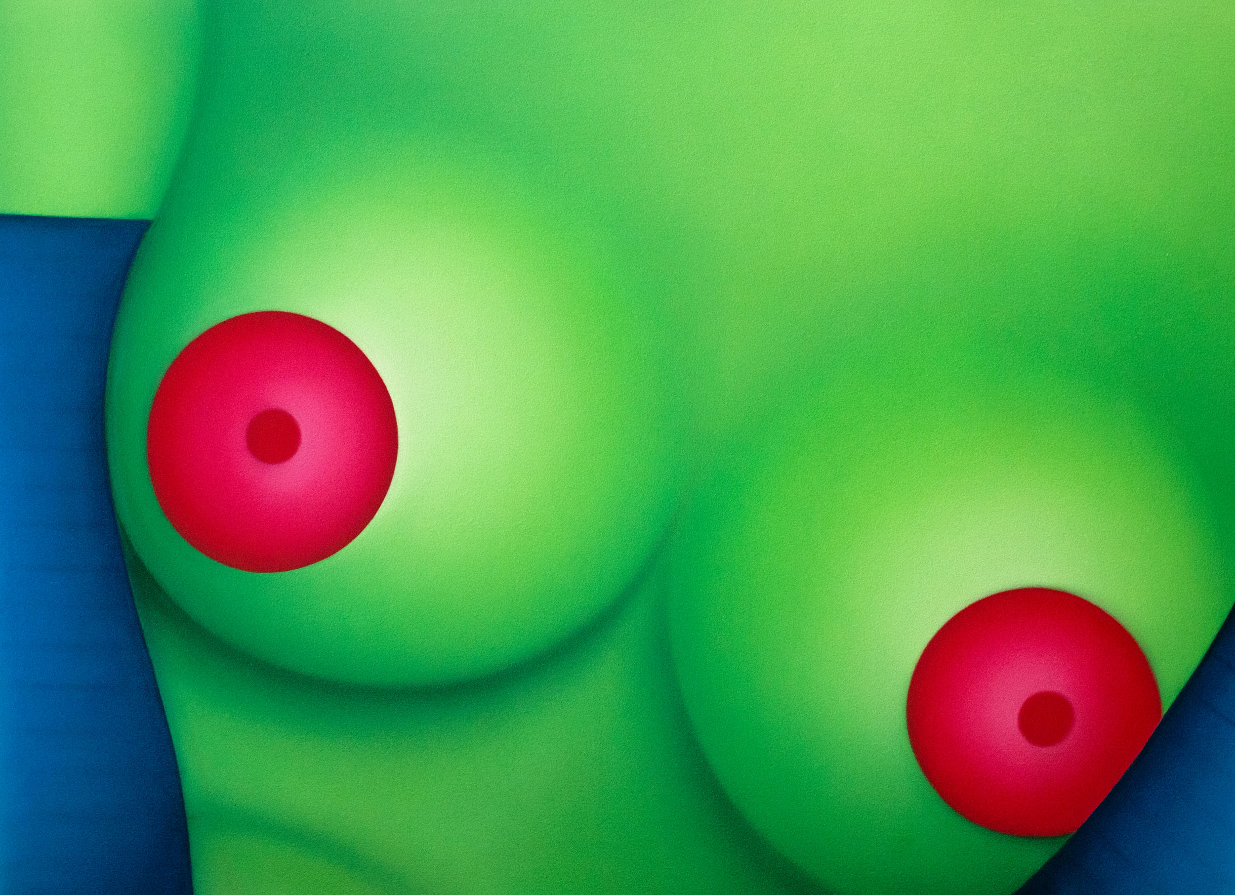 Luce che delimita spazi certi, non ombrati, necessari ad una comprensione chiara, con un tratto completato dal colore, primo vero attore della sua pittura, Caldo, denso, immediato, leggibile come un moderno fumetto animato per la sua tonicità cosi naturale ma essenziale, e da questa tonicità, dai contrasti volutamente giocati si percepisce il movimento, l’immagine che non statica appartiene al colore che muove il tutto, presenta nella sua primarietà, il bisogno di un’emotività semplicemente complessa.