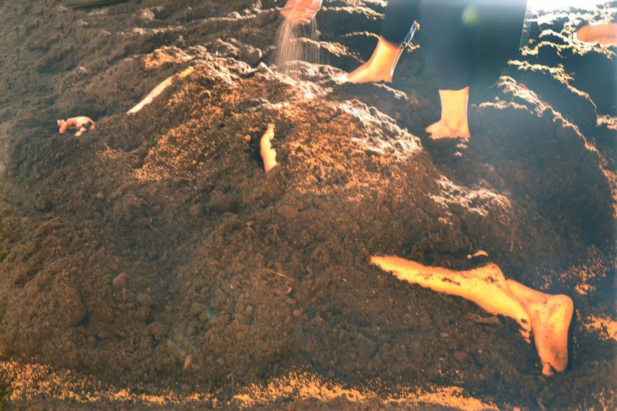 Sperimento una serie di azioni artistiche a contatto con la terra. E' una sorta di ritorno all'origine, a un ventre primordiale, un grembo precedente a quello materno. Il bisogno di sentirsi una cosa sola con la terra, quasi il suo respiro, va di pari passo al bisogno di un'ulteriore protezione sulla mia stessa pelle.