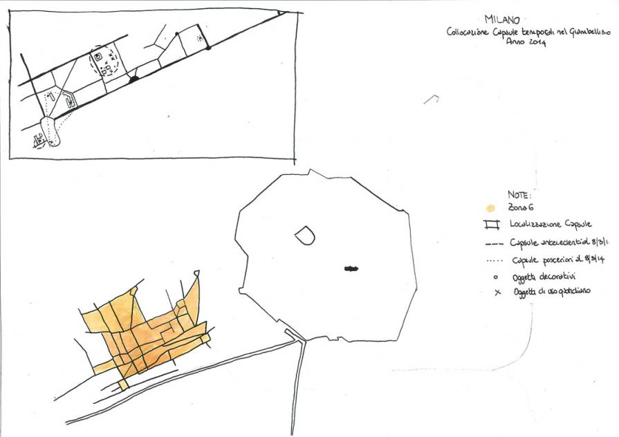 una foto della mappa “archeologica” della localizzazione delle capsule