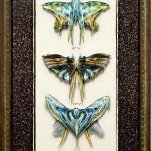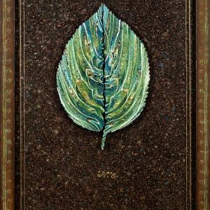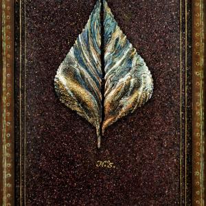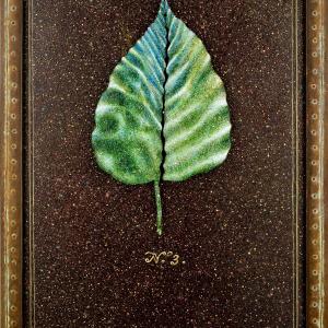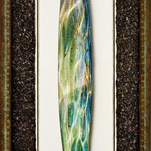 Watercolor and acrylic on Arches paper, burnt edges; background: Kamilo plastic in tinted, ground polyester resin.