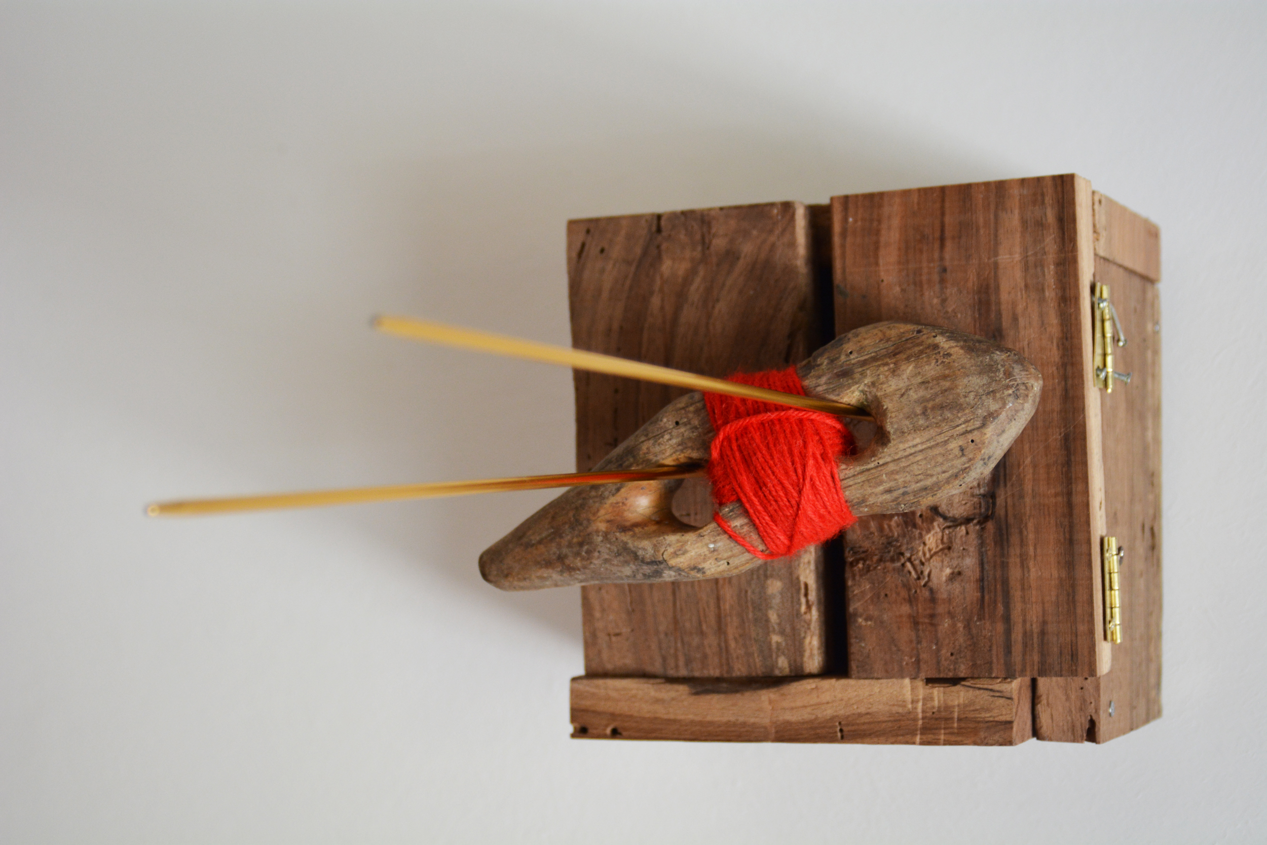 E' stata preparata con raccogli fili e ferri da maglia