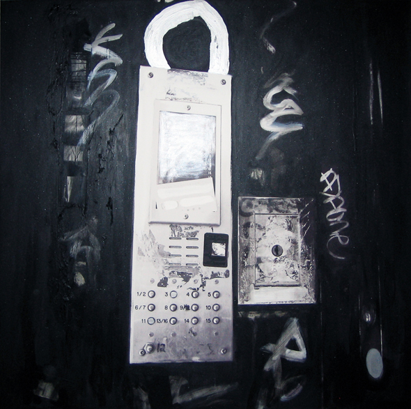 Le ampie superfici nere si caricano di forza, anche grazie ad interventi a collage che danno spessore al soggetto.