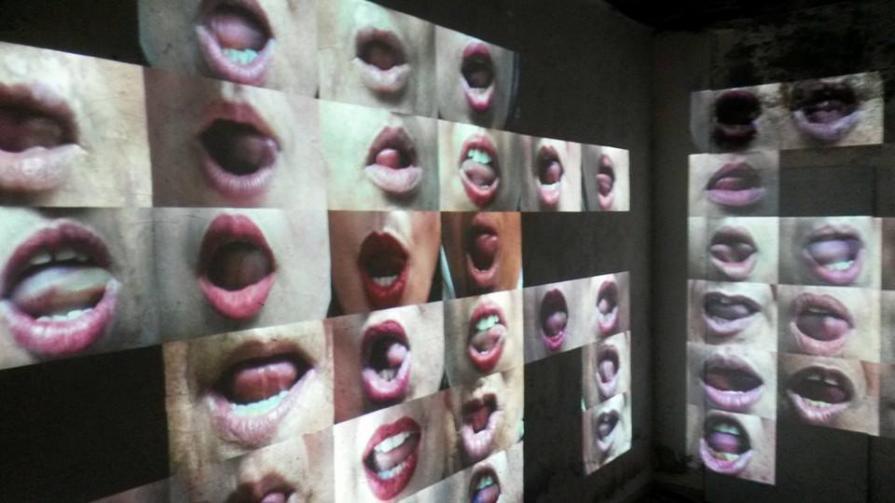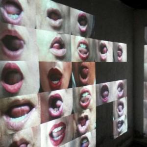 Across three surrounding walls of a darkened room, these single images appear arbitrarily out of the darkness and assemble frame-by-frame until there are hundreds of ululating mouths enfolding and encompassing the viewer into a mighty, almost unbearably forceful crescendo of sound and image. This defiant deluge of unadulterated female happiness functions as both a triumphant and poetic celebration of female identity and sexuality as well as visualising a pervasive unifying bond amongst women that transcends geographical borders, religions and ideologies.