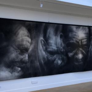 Due to the exceptional size of this drawing it becomes almost reminiscent of an operatic backdrop in front of which “other life stories might be enacted”… Furthermore, this drawing explores the dramatic through a sense of movement in the appearing and disappearing images and also explores the luminal quality of being and becoming through the actual drawing trace which, in places, seeks to becomes less representational and becomes more of a psychological and spiritual exploration through the conduit of human emotion.