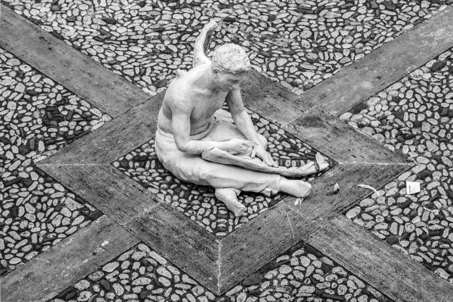 L’angelo, portatore di luce e speranza all’uomo, si spoglia, si umanizza e si riflette nella nuova consapevolezza di essere anch’esso protagonista dell’esistenza.