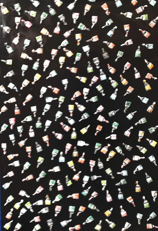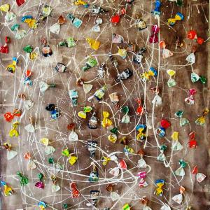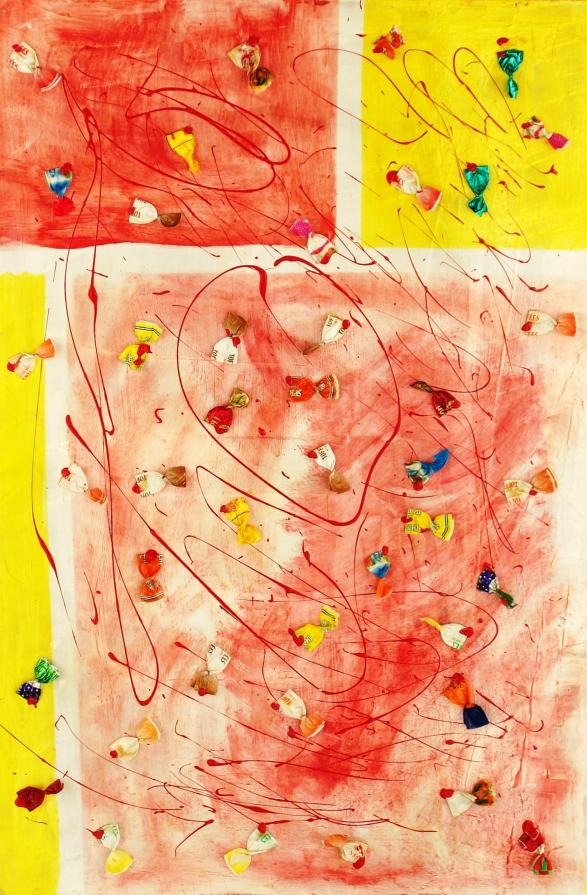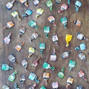 Il lavoro qui rappresentato appartiene ad un ciclo pittorico il cui titolo è stato mutuato dall’omonimo film, con l’eccezione che, in questo nuovo scenario, l’attenzione va riposta, più che nelle caramelle in sé, nell'involucro che le racchiude e le protegge: la loro carta. Rinvenute casualmente sul ciglio di una pista ciclabile e giacenti in ordine sparso nel fossato ad esso attiguo, queste carte risultano volutamente abbandonate al proprio destino di rifiuto urbano.