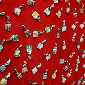 Preferisco sapere che la mia produttività artistica, legata al recupero ed al riciclo della carta della caramelle, sia indissolubilmente correlata all’incertezza, all’estro, all’intenzione dello sconosciuto; la mia opera sia, per questo tipo di realizzazioni, in qualche modo dipendente dai rituali dello sconosciuto e assolutamente vincolata alle Sue azioni. Che fa quello che fa, proprio perché non sa il fine ultimo che subiranno le oggettivazioni dei suoi suoi rituali, gli scarti delle sue compulsioni.