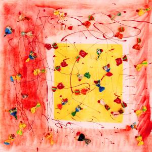 Caramelle da uno sconosciuto . Una storia vera. Circa 6 anni fa , un estate del 2009, mentre facevo jogging, , camminando lungo un percorso ciclabile, ai margini di una strada del paese dove vivo , mi sono imbattuto, con lo sguardo, su un cumulo di quadratini colorati , simili a piccole piastrelle, a tasselli di un mosaico, giacenti in ordine sparso ,in un piccolo fossato . Incuriosito, mi sono chinato per verificarne la natura e la consistenza e, con mia sorpresa, ho realizzato che si trattava di carte di caramelle colorate ripielegate su sé stesse in maniera precisa e meticolosa, da risultare una sorta di quadratino con un appendice finale. Mi avevano colpito per la loro peculiarità estatica, la precisione della forma, la superficie cromatica, uguale e al tempo stessa diversa,che contraddistingueva ciascuna caramella, il cui involucro era ripiegato con sapienza e precisione e poi abbandonata n un rigagnolo stradale. Erano circa una quarantina di carte di caramelle. Poiché ero solito utilizzare materiale di riciclo, proveniente dall’uso comune, nei mie quadri , ho pensato di raccogliere questo materiale originale per utilizzarlo, all’uopo ,nei mie lavori artistici, quando ne avessi avuto l’’ispirazione. L’attrazione verso quelle carteperò fu così viva e immediata che dopo due giorni realizzai il mio primo quadro dedicato ad esse , dalle piccole dimensioni e dalla superficie rosso cromata. Dopo un paio di settimane sono ripassato dallo stesso luogo è con mia sorpresa ho rinvenuto ancora un numero maggiore di carte di caramelle,lasciate nello stesso luogo ripiegate nella stessa maniera di quelle rinvenute precedentemente. Erano lo stesso tipo di caramelle, la stessa tipologia di colori associata a diversi gusti prodotti dalla medesima azienda dolciaria Anche questa volta le ho raccolte con l’intento preciso di farne subito un altro quadro . E così, periodicamente. da allora. passo da quel luogo per rinvenire e recuperare quelle carte che qualcuno ripone allo stesso modo e nello stesso luogo in modo continuativo e ripetitivo. Ormai sono anni che questo rito si consuma con le stesse modalità. Da una parte lo sconosciuto mangia le stesse caramelle , le ripiega e le getta in quel selciato, edl’artista che periodicamente, ripassa dallo stesso luogo per recuperare quelli iscarti che diventano materiale artistico costituivo dei suoi lavori