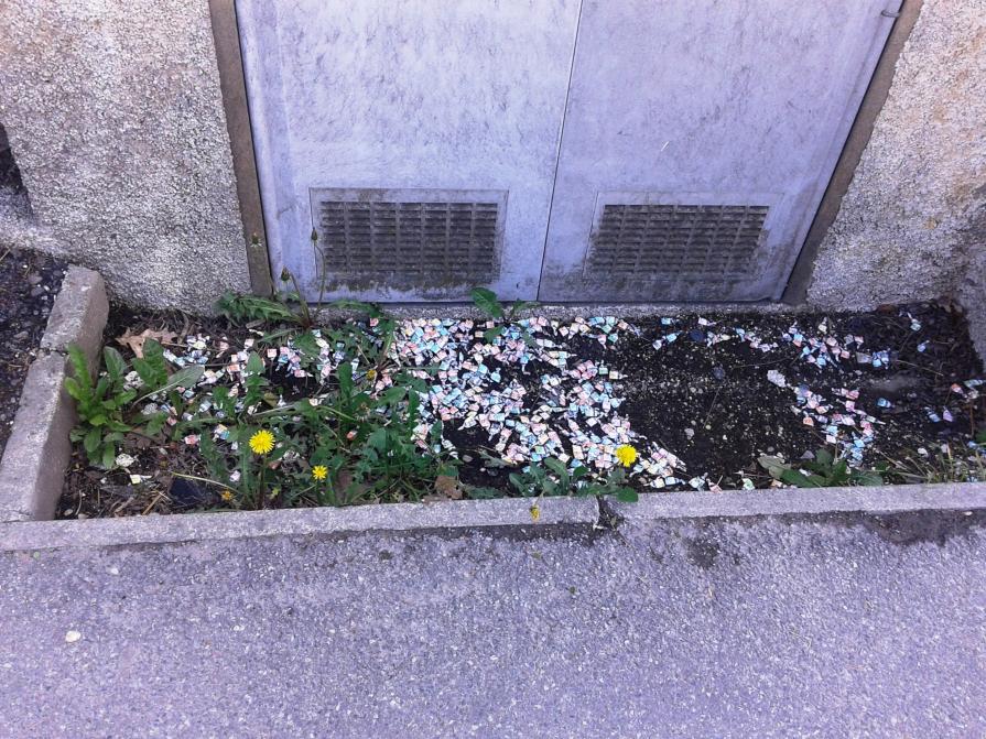 In cuor mio , tuttavia, non nego di aver pensato alla psicologia di questo sconosciuto, alla sua vita quotidiana, al perché senta la necessità di compiere costantemente quei gesti ripetitivi e quasi maniacali che si concretizzano nel ripiegare e ricomporre quegli scarti che poi vengono abbandonati in un luogo di passaggio visibile a tutti.