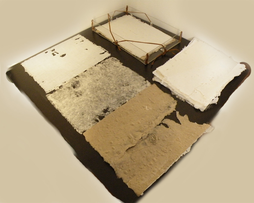 Componente aggiuntivo dell'installazione, le scatole di plexiglas, permettono al visitatore una facilitata lettura stratigrafica che si avvale anche del tatto come elemento sensoriale.