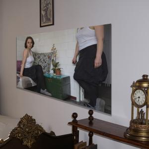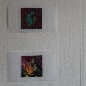 The preliminary visit clarified that I would have to diverge from painting, my usual medium, to make my temporary intervention consistent with the pre-existing conditions. I noticed a need for something more insubstantial that would hold an image - objects that could be placed anywhere in space without causing any damaged or much interference. One idea I am following is of manufacturing several pillows in needlepoint, as a pretext for advancing through the rendered images concepts of my own. Thus, for now, I am engaged in what might be seen as an idiosyncratic and counterintuitive practice, of needlepoint, as it is imperative to see what is the first work I can produce in this manner, that I would consider a significant addition to my portfolio. The project is set to evolve in a way that is to be found through practice.