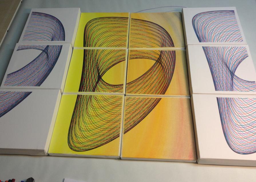 Pittura su tela, pennarello, NO grafica digitale.