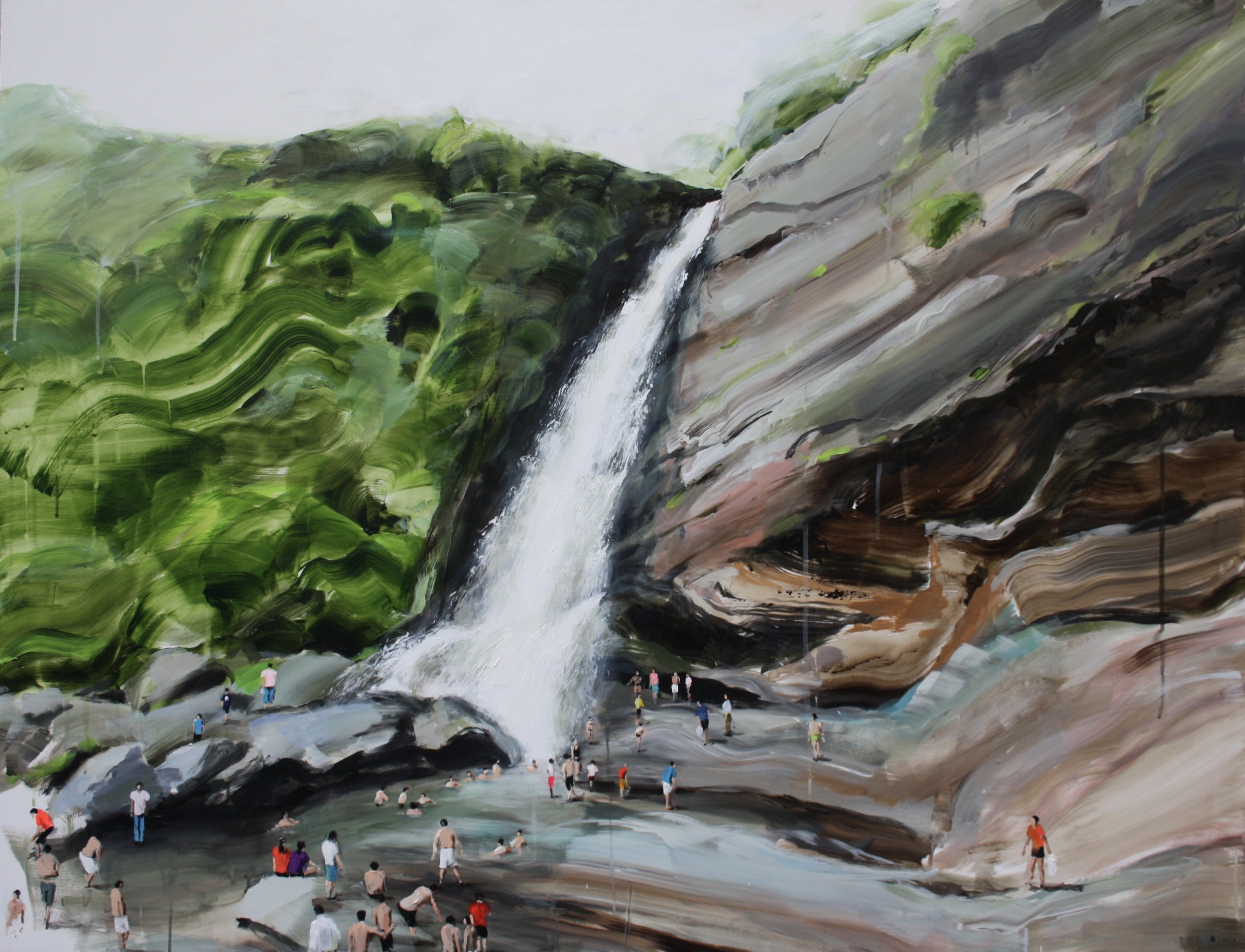 Quadro 'On the rocks' è basato sulla ricerca della mia memoria e come le figure istantanee possono cambiare e creare qualcosa di nuovo. Nelle mie opere la gente gioca un ruolo importante e per me è il momento cruciale in cui il dipinto cambia e improvvisamente c'è un perfetto disordine e la conversazione immaginaria tra la gente. La sensibilità è rivelata nella capacità di percepire la condizione della natura e tradurla in immagini e colori consonanti. Il mix perfetto è raggiunto tra figure umane dipinte quasi realisticamente in un ambiente quasi astratto.