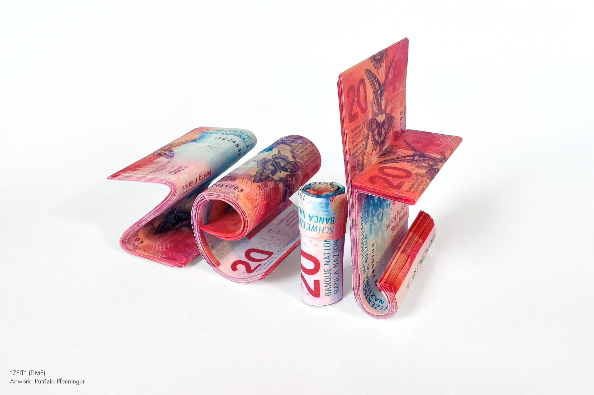 "ZEIT" has been created with 100 banknote-value of 20 CHF, modelled and glued.