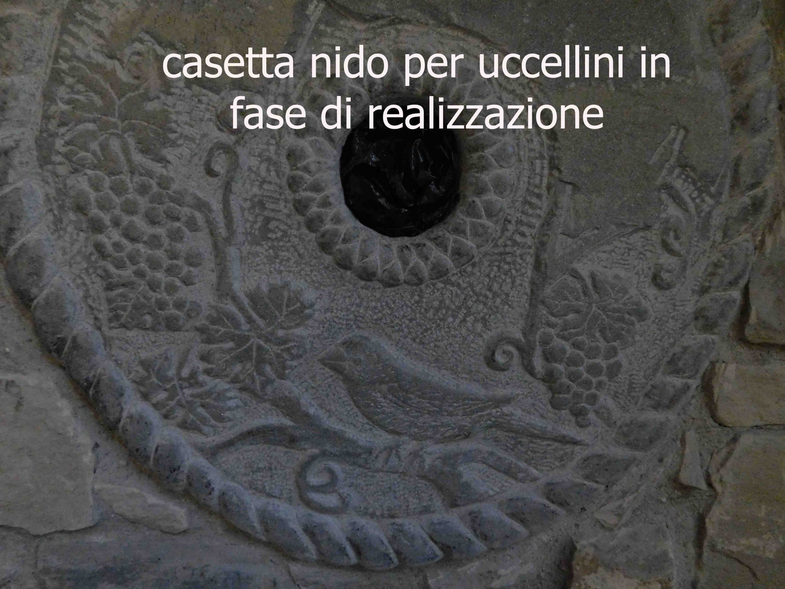 Nel muro in sasso della mia casa, che ho costruito 10 anni fa, avevo incastonato un blocco di pietra arenaria con foro, come casetta nido per uccellini.
