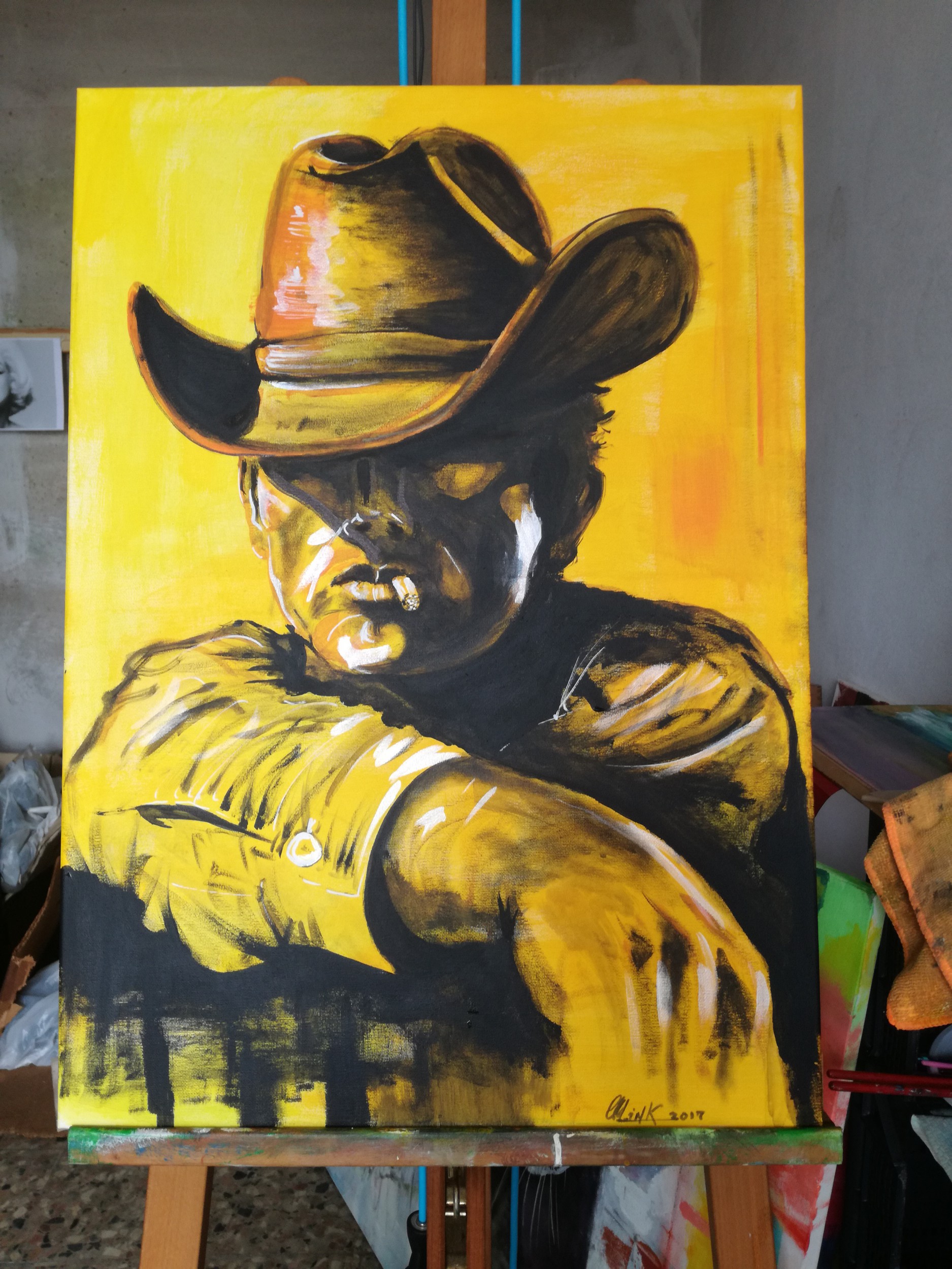 "Jimmy" James Dean from Il Gigante Pittura, Memoria, Figura umana, Illustrazione, Acrilico, 50x70x2cm marzaduri stefano,acrilico,informale,fineart. Jimmy Inserita 8 anni fa 5 Mi piace Non piace più 3 Commenti 218 Visite Condividi Facebook Twitter Google + Piace a 5 Paolo Graziani realizzazioni Artista - Forli Nicci Artista, Designer, Pittore - Vienna, Austria Tanya Bartolini Premium Artista - Milano PASQUALE GRANDE Artista - Milano robolotion Artista - Berlin, Germania Commenti 3 8 anni fa robolotion Artista Intriguing painting style. 8 anni fa inksteve Artista Grazie mille Teresa!! 8 anni fa Teresa Palombini Artista Bel lavoro, complimenti!! Inserisci commento E' necessario effettuare il login o iscriversi per inserire il commento Login