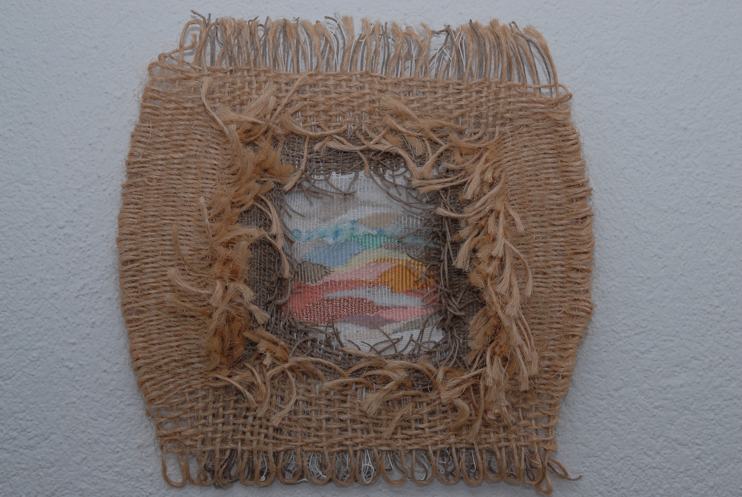 opera realizzata con la tecnica manuale della tessitura e annodo su telaio rudimentale in legno.