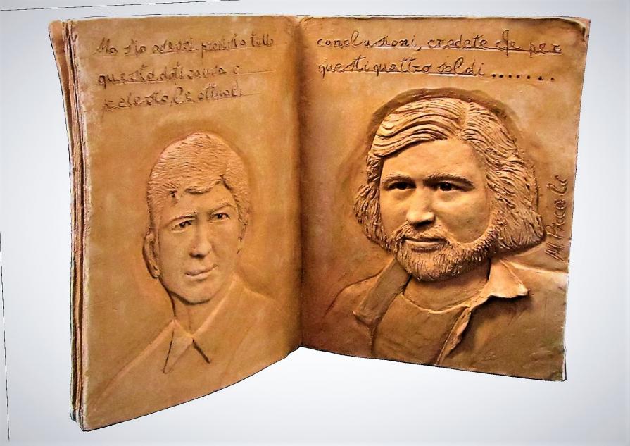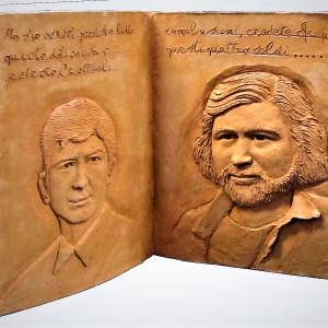 "Avvelenata", bassorilievo in terracotta patinata raffigurante Francesco Guccini, facente parte delle sculture della mostra "Vasco e i Musicisti della via Emilia", realizzata a Zocca nell'Agosto 2018, dedicate al gruppo di cantanti emiliano romagnoli che vivono lungo la via Emilia.