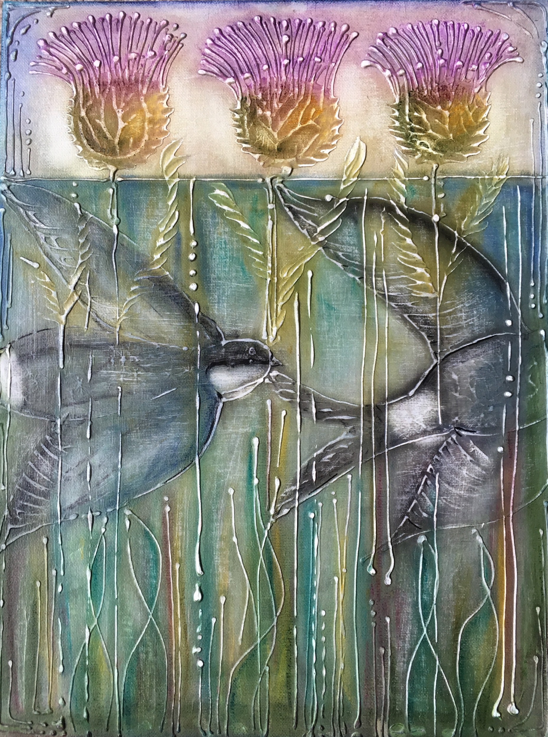 House Martins Return Pittura, Animale, Bellezza, Paesaggio, Natura, Tecnica mista, 30x40cm Verde Viola nature birds thistles Inspired by birds coming back to Scotland in Springtime Inserita 6 anni fa 4 Mi piace Non piace più 0 Commenti 167 Visite Condividi Facebook Twitter Google + Piace a 4 Maria Grazia De Cubellis Art lover - Firenze Tanya Bartolini Premium Artista - Milano Nanouk Reicht Art lover - Strasbourg, Francia Thomas Dielman Artista - Brussels, Belgium Commenti 0 Inserisci commento E' necessario effettuare il login o iscriversi per inserire il commento Login