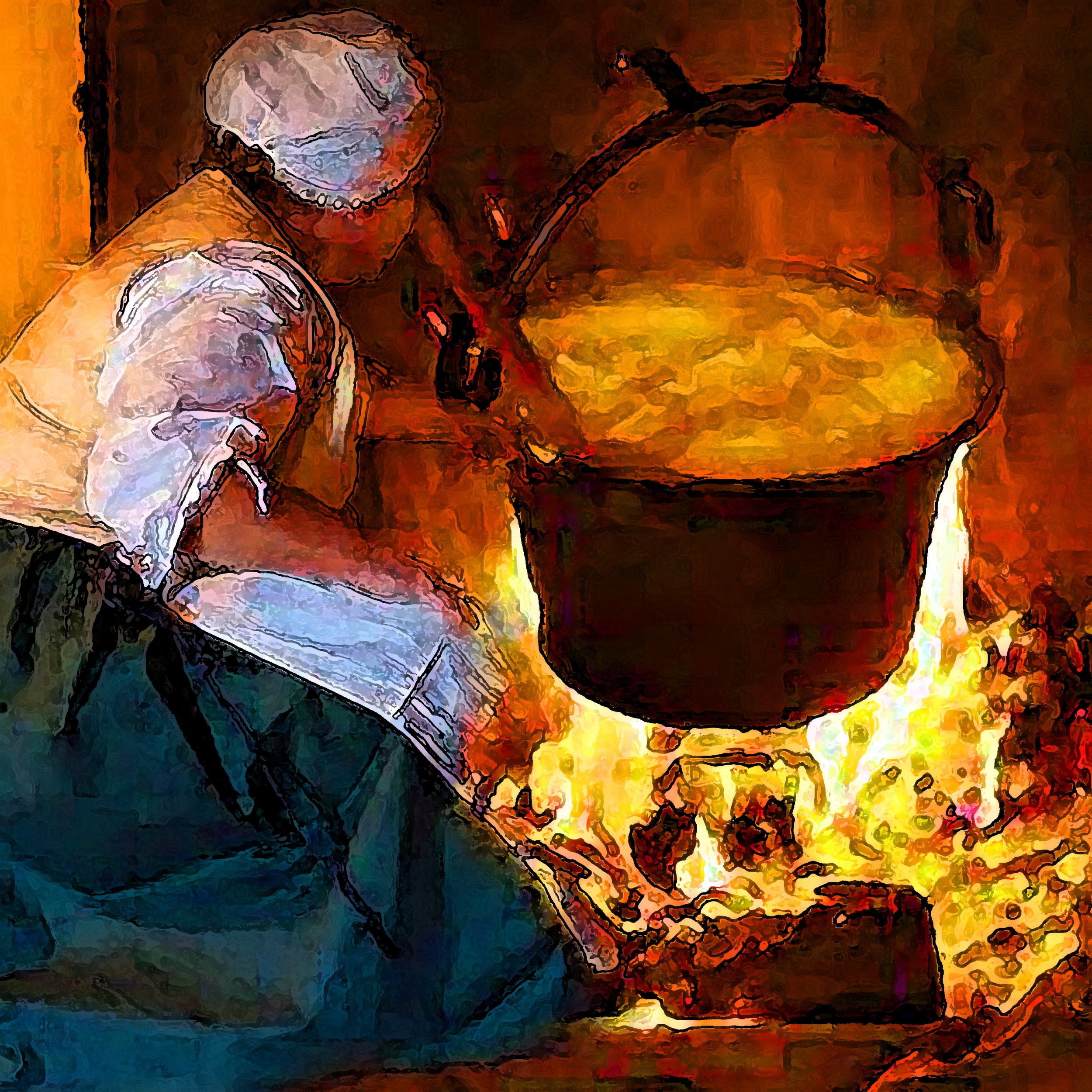 inginocchiata nel chiaror del fuoco,