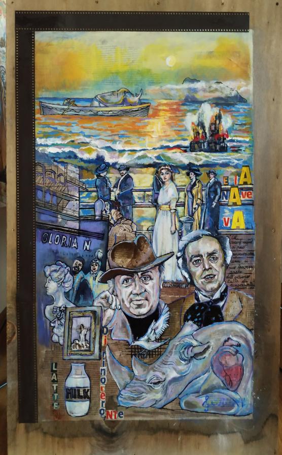 Nubifragio Pittura, Fantasia / Visionario, Acrilico, 50x80x1cm Dipinto su tavola di legno, su giornale dedicato a Federico Fellini e al suo film "E la nave va" Inserita 5 anni fa 4 Mi piace Non piace più 1 Commento 112 Visite Condividi Facebook Twitter Google + Piace a 4 Mauro Bobbo Artista, Designer, Installation artist - Venezia Tanya Bartolini Premium Artista - Milano Francesco Lussana Artista - Bergamo Patrick Smith Premium Scultore - London, Canada Commenti 1 5 anni fa Mauro Bobbo Artista, Designer, Installation artist Complimenti veramente interessante! Inserisci commento E' necessario effettuare il login o iscriversi per inserire il commento Login