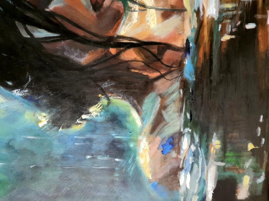 Un'opera evocativa che cattura l'intensità del momento in cui l'anima si fonde con la natura. Questa straordinaria pittura ad olio su tela ritrae una donna immersa nell'acqua, avvolta da giochi di luce e ombra che ne esaltano la bellezza e il mistero. Le pennellate vibranti e la tavolozza di colori ricca di sfumature creano un'atmosfera intima e contemplativa. Perfetta per chi cerca un pezzo d'arte emozionante e suggestivo, capace di aggiungere profondità ed eleganza a qualsiasi ambiente.