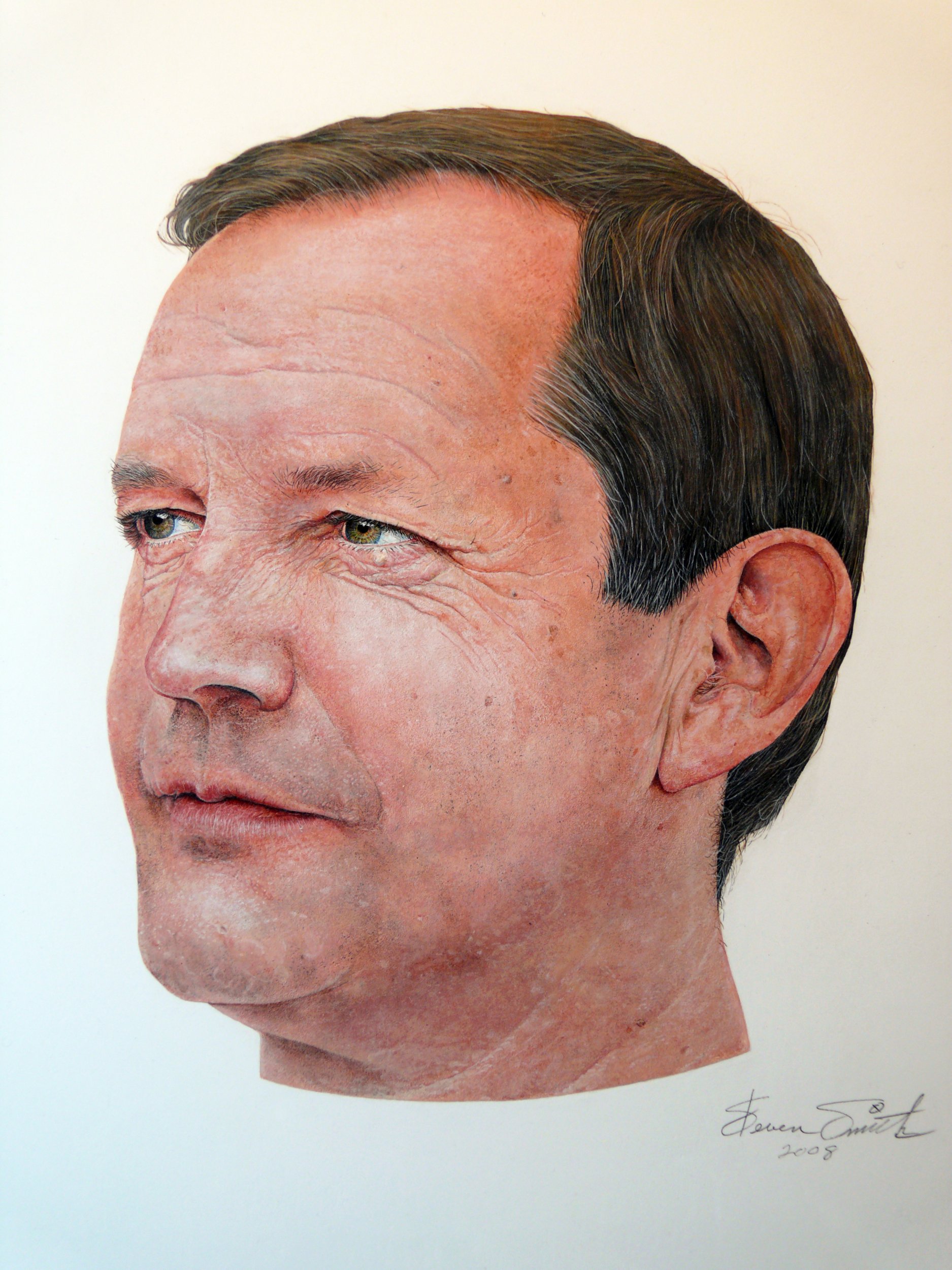 "RQ" is a dry brush acrylic on gessoed panel.