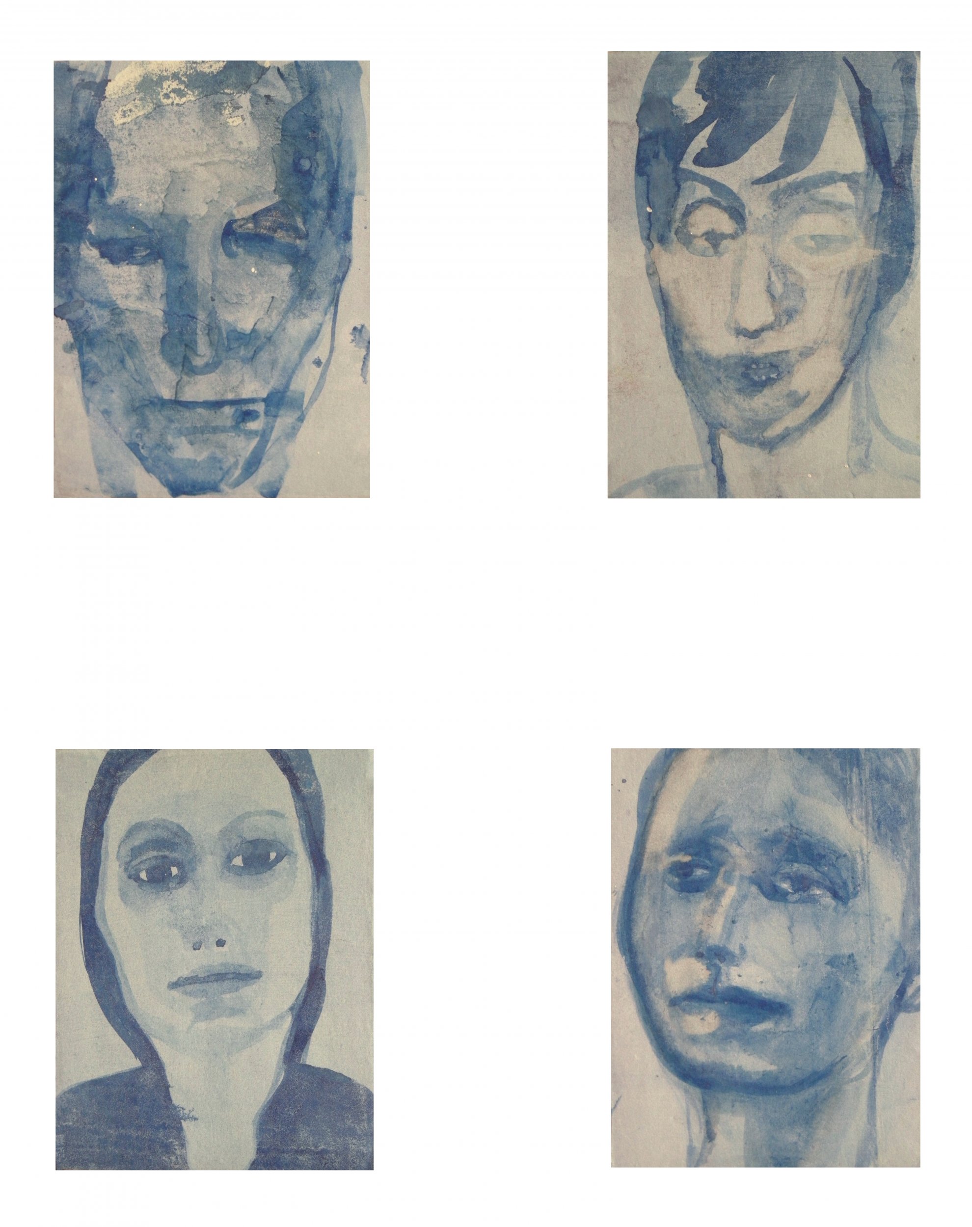 (...) Sono impressioni bluastre fermate temporaneamente su vetro, specchi, carta da manifesto: supporti effimeri, fragili, destinati a perdersi, a variare, ad alterarsi nel tempo. In un’alternanza di percezioni visive e mentali, di acquisizioni e di perdite, di trattenimenti e frantumazioni della forma, dell’apparenza, in un costante e vano tentativo di fissare l’immagine visiva nello sguardo e nella mente, il riproporsi invece sfuggente ed inevitabile dell’assenza dell’altro e di sé, lo consegna ad una presenza emotiva eterna.