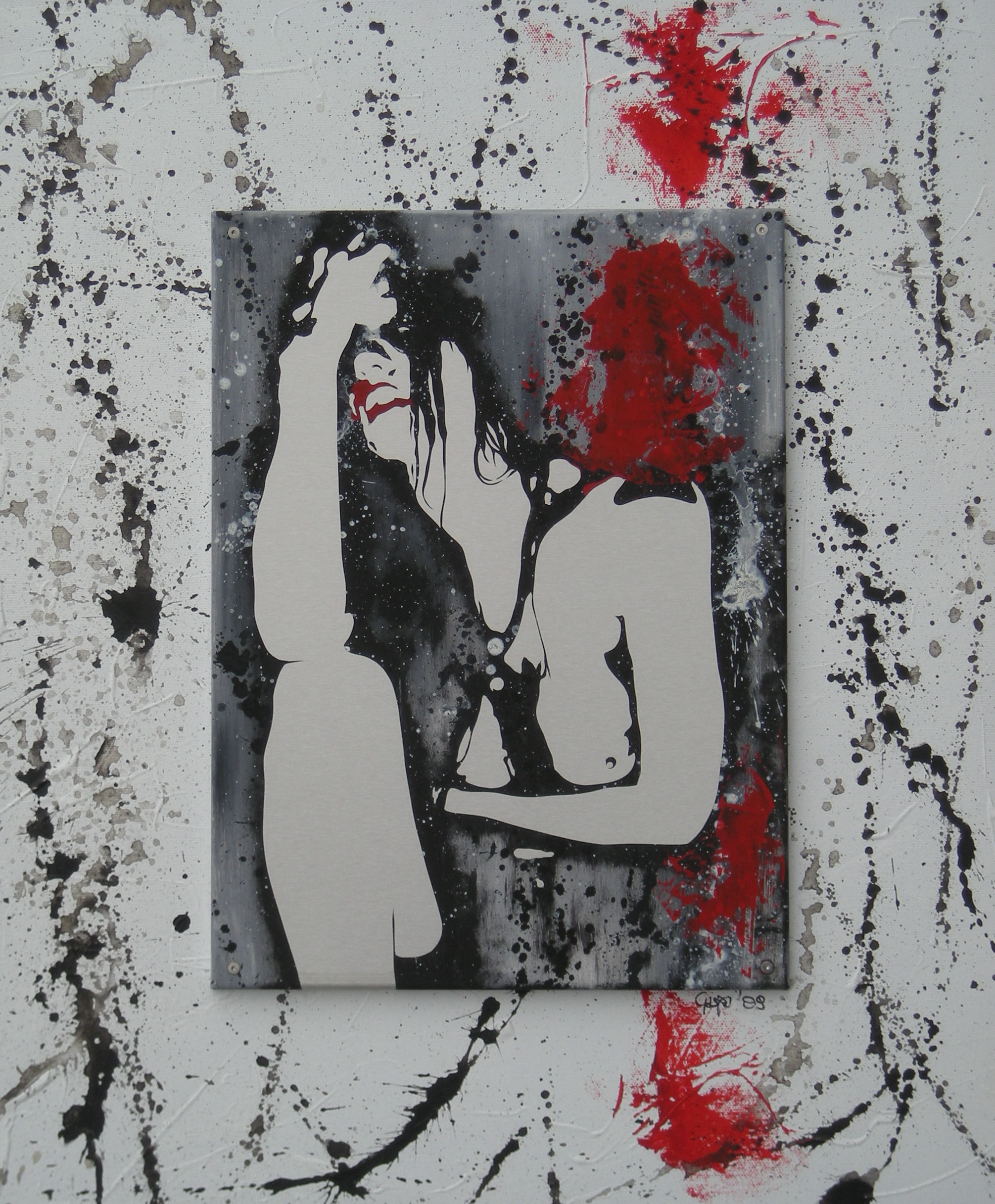 Tecnica mista su acciaio inox satinato fissato su tela.