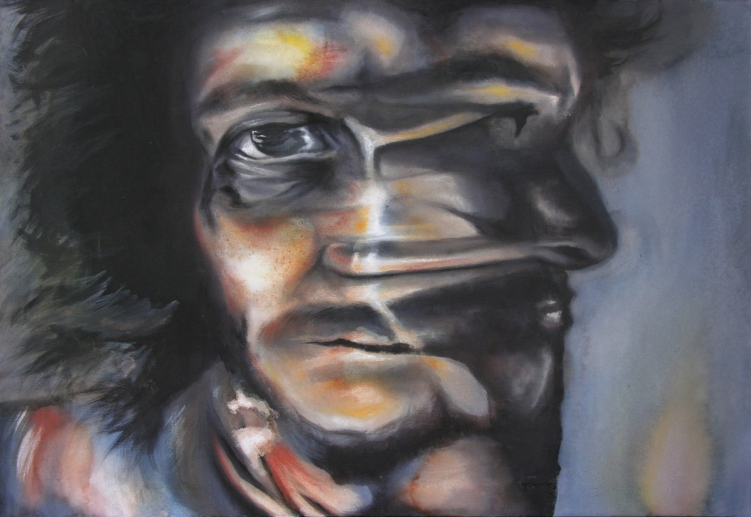 Autoritratto parte di una serie di quadri dove mi inserisco in prima persona nel esprimere disgusto ed irritazione verso una società sempre più alla deriva e vacua; dove giornalmente si sprecano fiumi e fiumi d’inchiostro, di pellicola per parlare del nulla più assoluto …