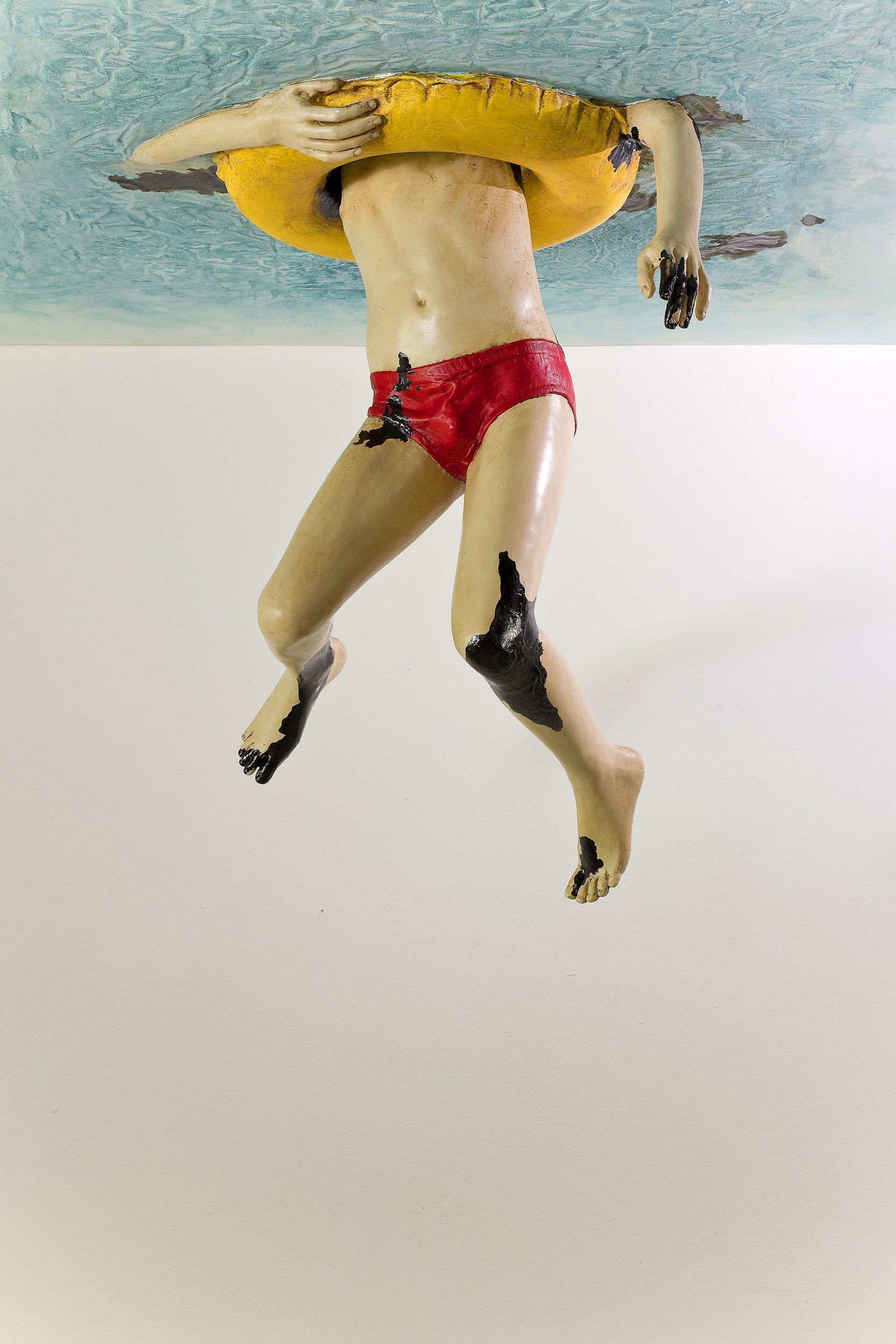 La scultura Summer Holiday è posizionata sul soffitto, e trasporta l’osservatore in fondo al mare giocando sul forte contrasto visivo e concettuale dell’immagine di un ragazzo durante le vacanze estive immerso nel mare inquinato dal petrolio.