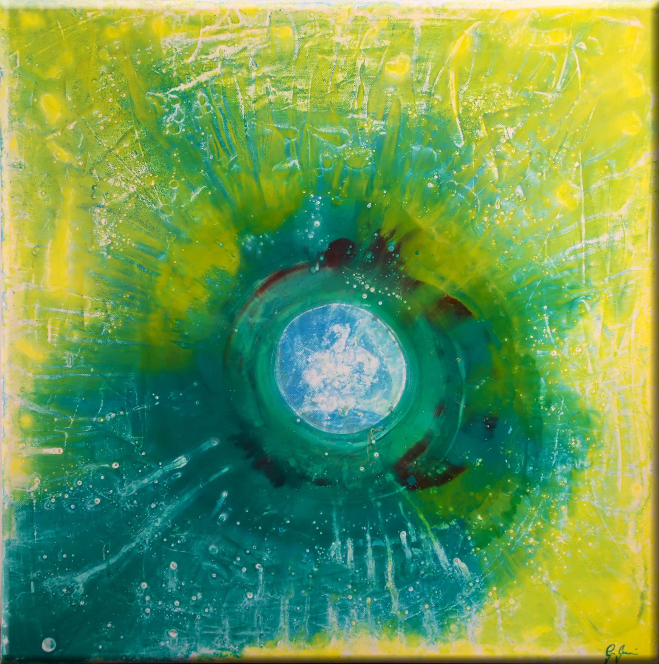 Straordinariamente simbolica.Perchè le attrazioni sono sia emotive che scientifiche?Perchè le stesse forze agiscono nell'essere come nel cosmo? Perchè tutto sembra eseguire uno stesso mandato? Il giallo,colore folle,irriducibile,dell'irrazionalita accesa, stà ai bordi.La calamita è di un azzurro pacificante.Tutto converge come in un vortice di positive e umane istanze o è un buco nero che tutto inghiotte?Anche qui dualità che sono nell'animo come nel cosmo.Brava Giusy!