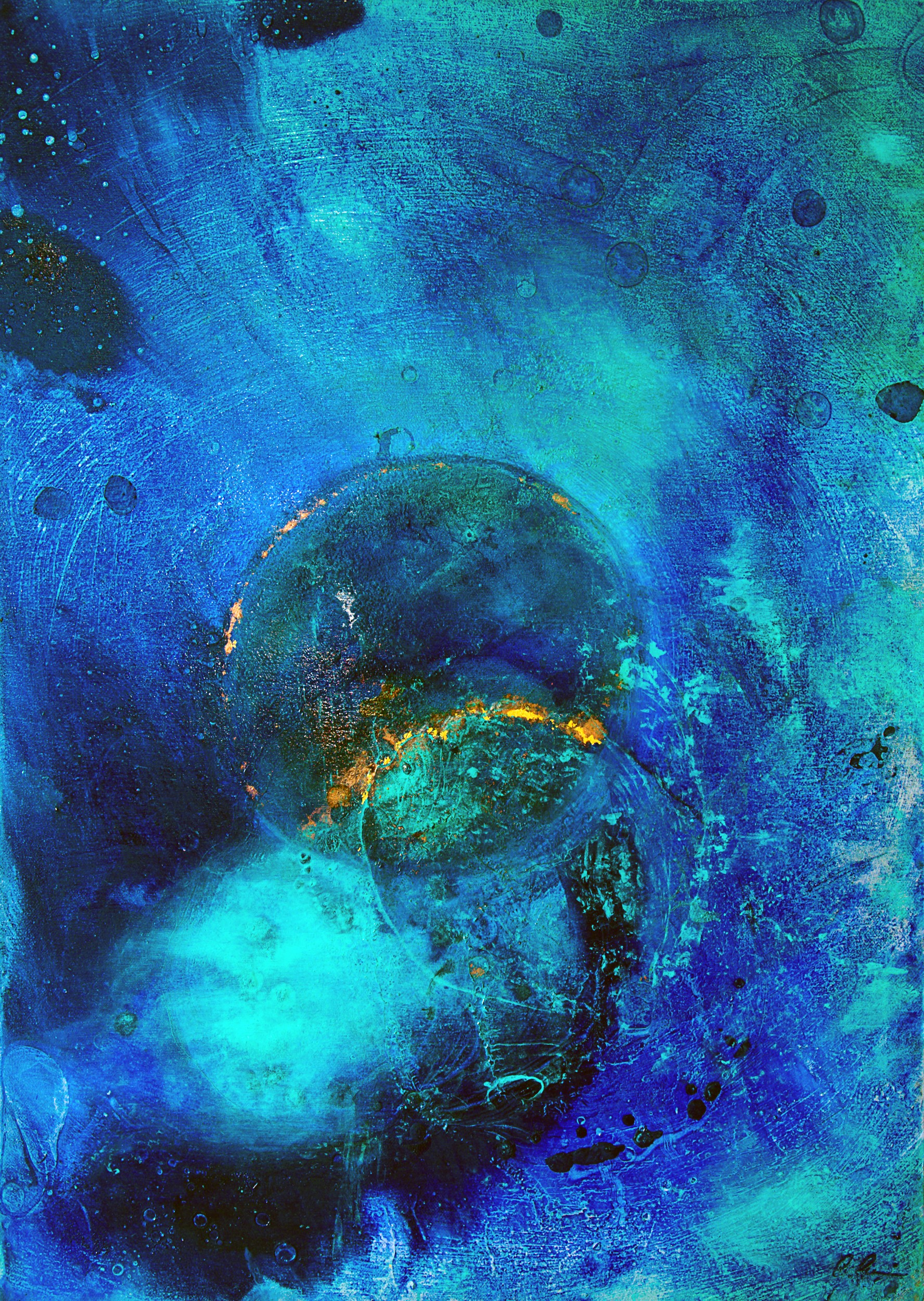 E' molto bello questo senso di cosmico che riesci a tramettere nel quadro : guardando i tuoi quadri si entra in un altro mondo,lontano dalla terra e sospeso nello spazio .Complimenti!