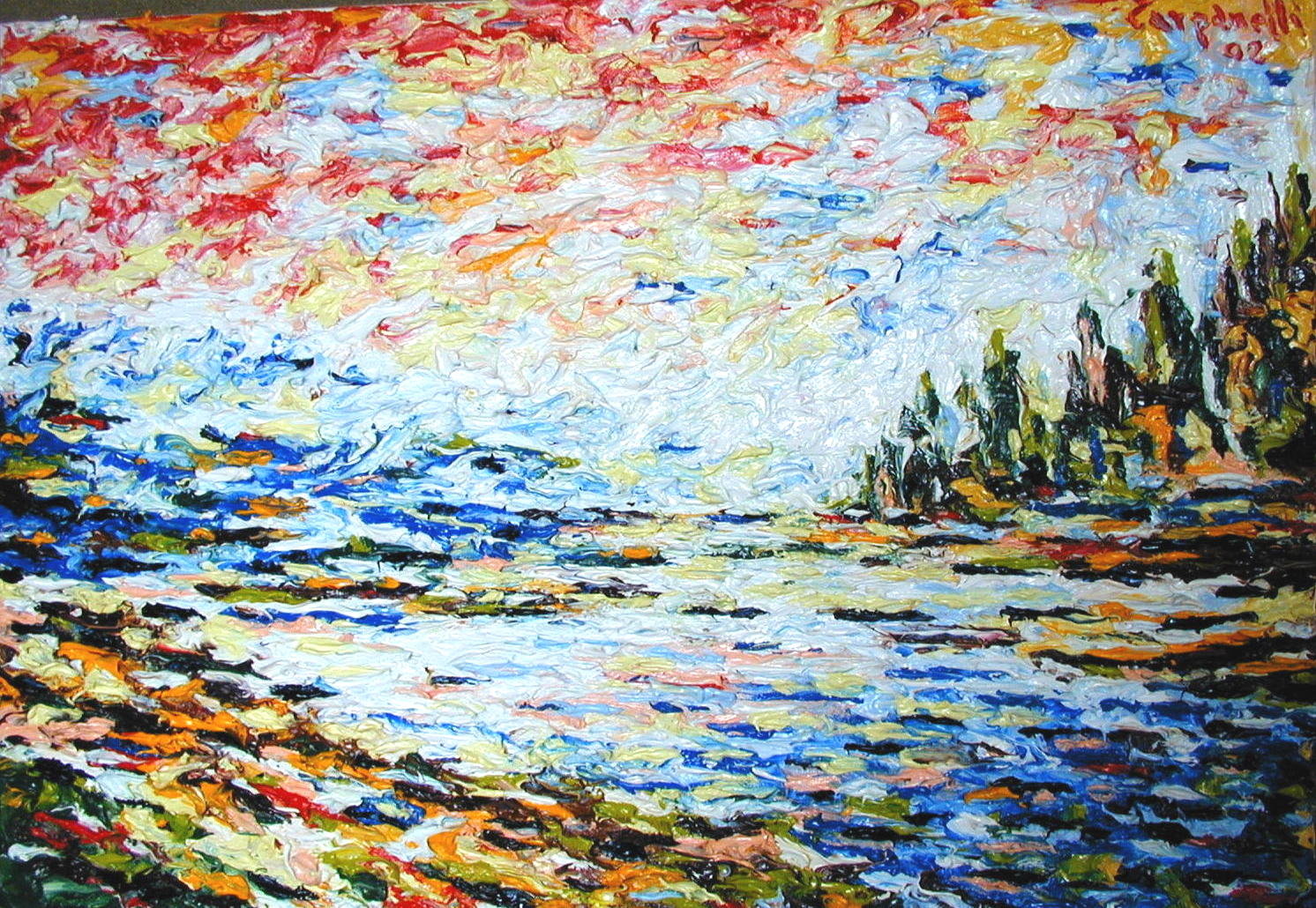 Bologna : Tramonto al Parco Talon Pittura, Paesaggio, Olio, 50x35x2cm Tela Olio paesaggio Inserita 14 anni fa 2 Mi piace Non piace più 2 Commenti 64 Visite Condividi Facebook Twitter Google + Piace a 1 Maria Cristina Neviani Artista - Modena Commenti 2 14 anni fa Maria Cristina Neviani Artista Ci stiamo avvicinando...tratti che suggeriscono,colori che si richiamano, la mente integra ciò che viene solo accennato.E la materia vibrante si protende verso l'osservatore. Sta spingendo per allargarsi. 14 anni fa cinzia rizzotti Artista bellissimo effetto Inserisci commento E' necessario effettuare il login o iscriversi per inserire il commento Login
