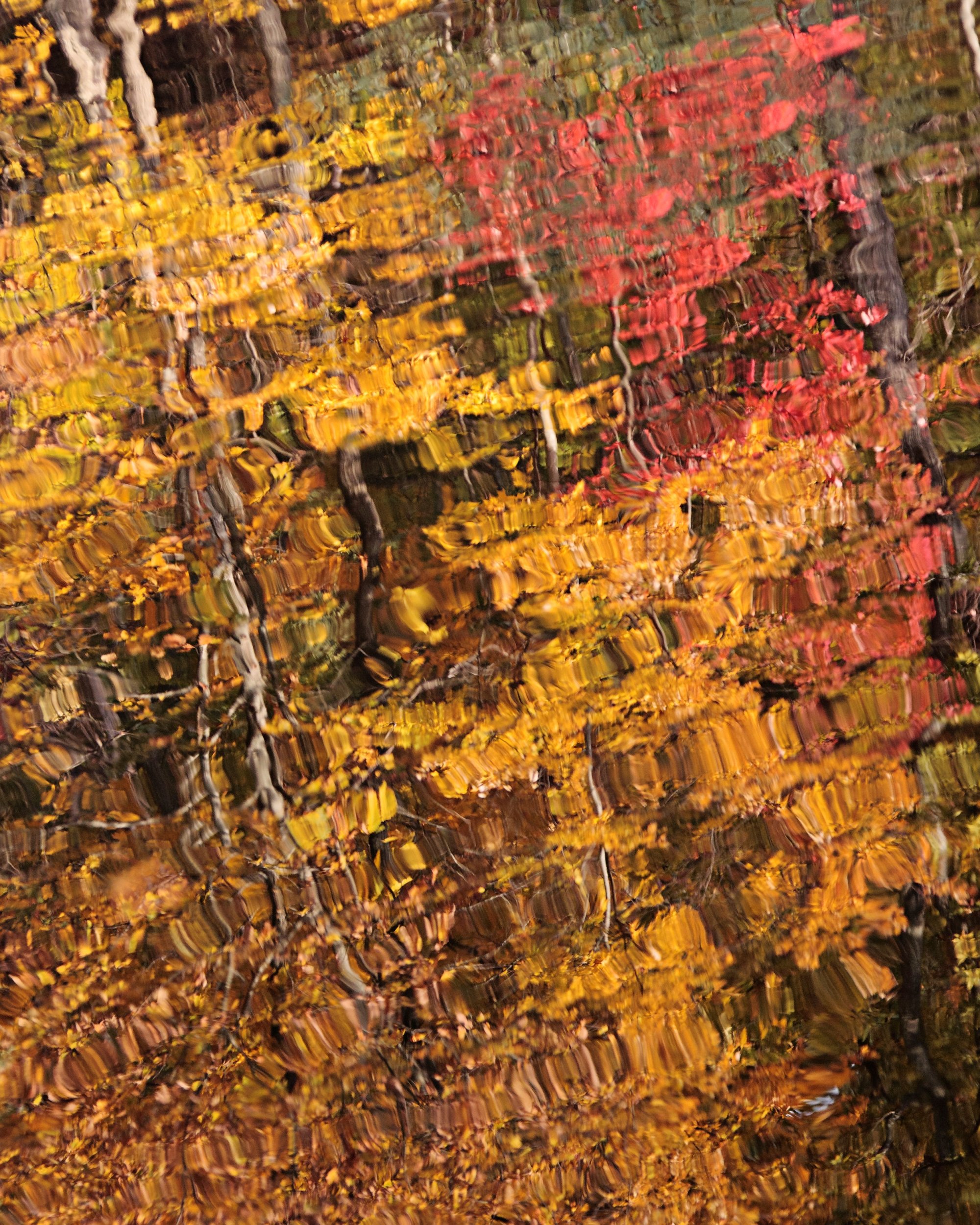 Impressionist type image of the reflection of Fall trees in the spill pond at the base of Amicalola Falls in North Georgia, USA.