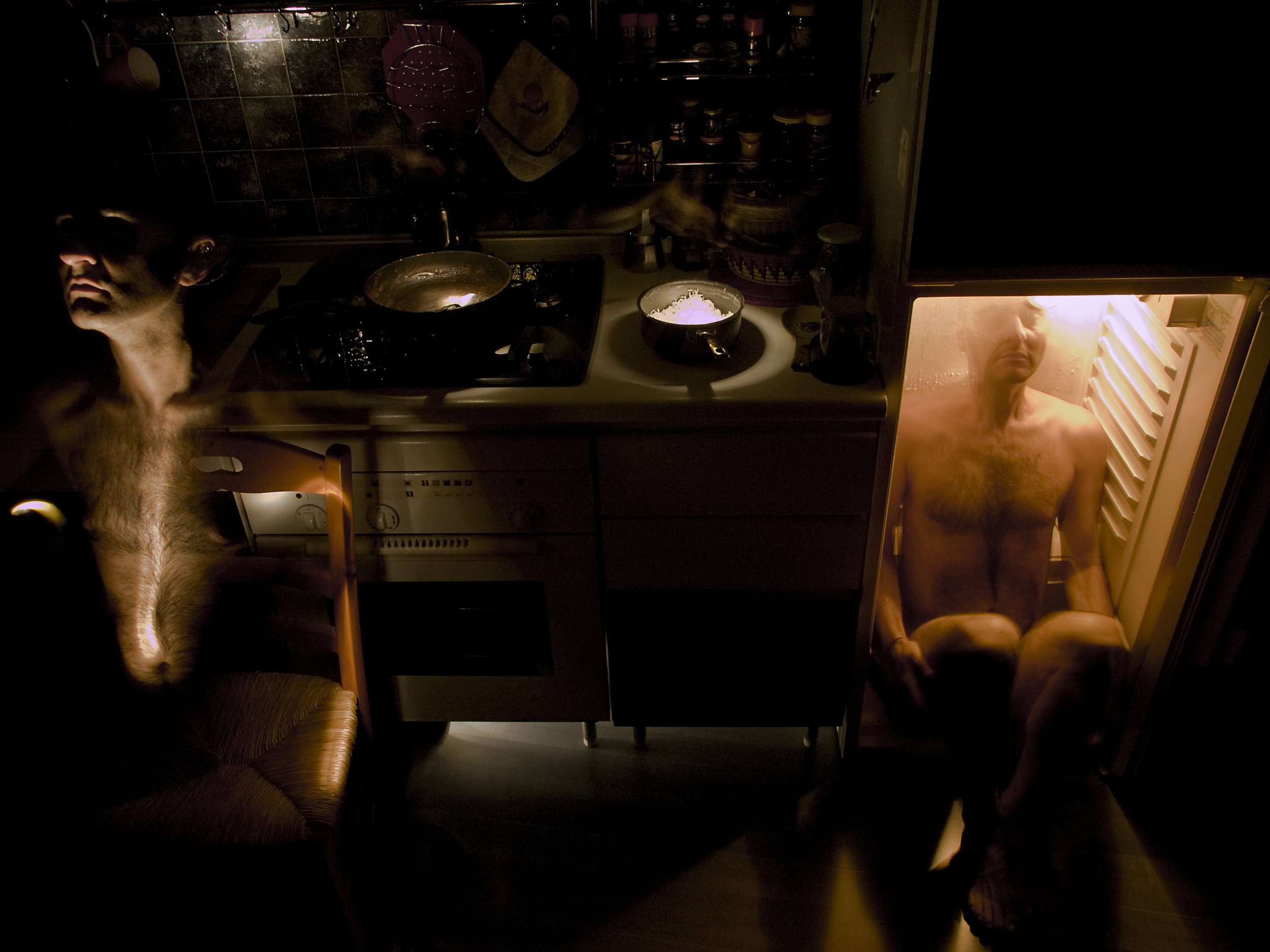 Note tecniche: Autoritratto. Scatto di 30 secondi, al buio, con l'ausilio di una pila. La figura doppia è dovuta al tempo lungo.