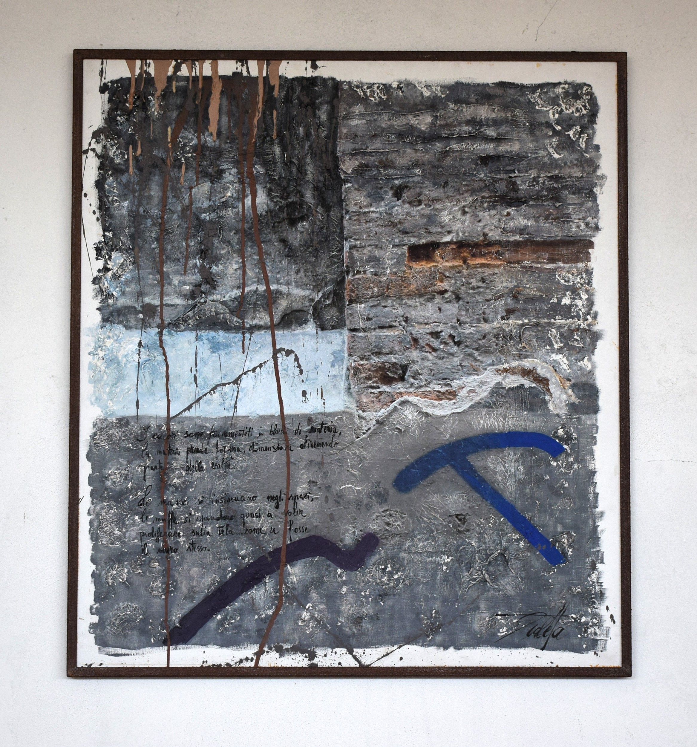 "In questa opera ai segni che il tempo lascia sui muri delle nostre città, si aggiunge la mano dell’uomo, che lascia scritte e graffiti. Sono messaggi che, come già facevano gli uomini preistorici con la pittura rupestre, consegniamo nelle mani dei posteri. "