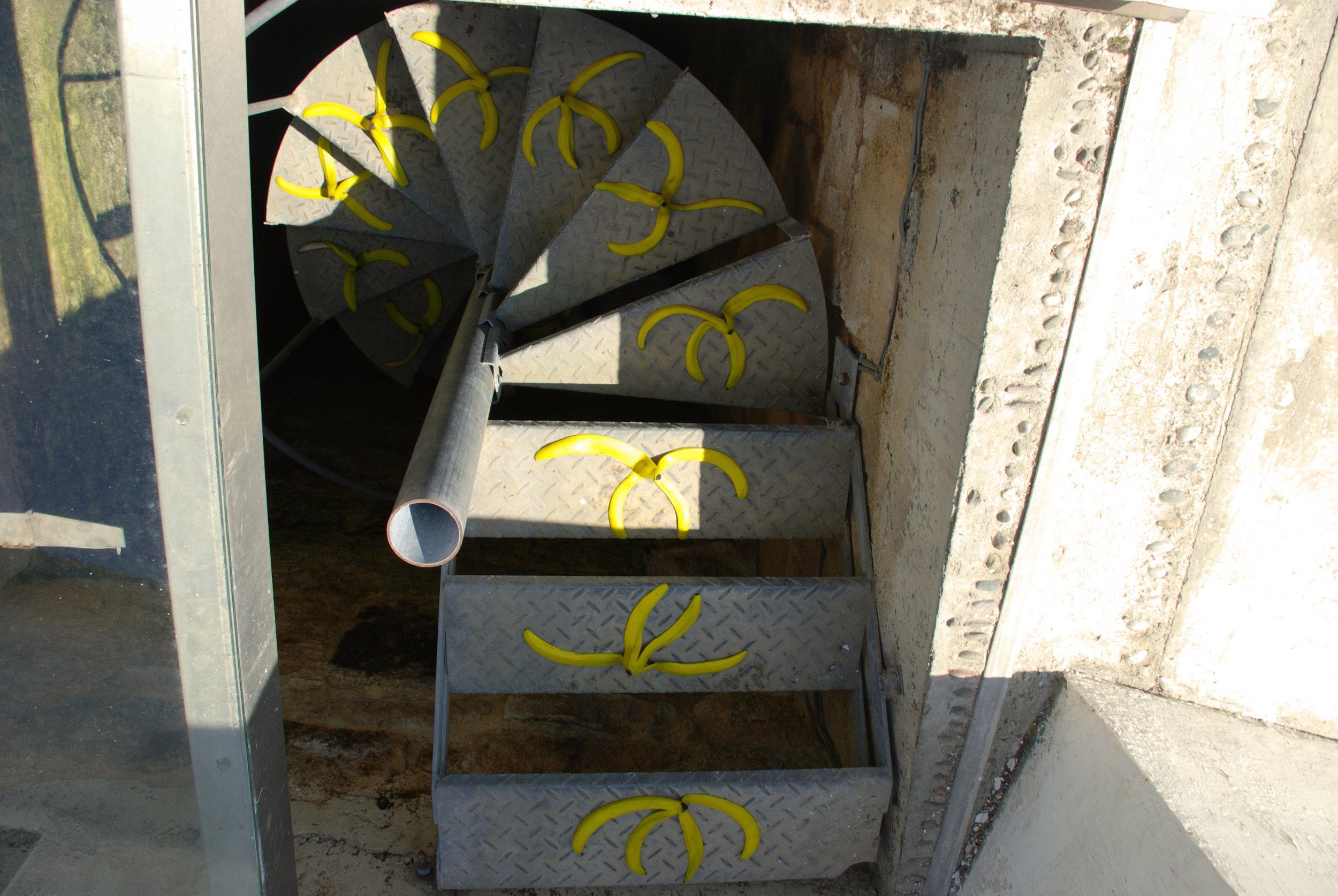My banana peels pretend to block the way down, they represent the spirit of ancient Nicosia where people do not completely die.