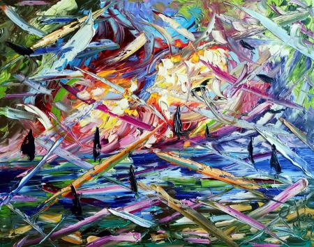 My painting is quick, to be consumed quickly, but of prolonged visual aftertastes that blend and change each time you observe the work, The purity of the pigments applied invites the viewer to stare at the work to begin to see the colors dance and convey emotion. Professional colours were used for the realization of the work. The painting is treated with final varnish for UV protection. The photos may differ from the original depending on the monitor that displays them. The painting is shipped by courier in an impact resistant box with tracking number and artist certificate. The sense of freedom that inspires the painting provokes deep, intense emotions that manifest themselves in a creative process that starts from its unconscious to reach the viewer through an art form that is difficult to find in contemporary Italian art. The shapes, lines, colors create a disruptive dynamism, pervaded by intense vigor, but balanced in its dimension. Refined communicative ability, Fruits of a synthesis between instinct and reason and awareness - 2000 €