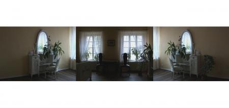 Iza Maciejewska’s video installation Emily Dickinson’s Room (a three-channel video, 2009; Emily Dickinson’s voice – Małgorzata Ossowska-Czader; sounds of birds – Kate Bush) features a private interior (a bedroom-studio) of the renowned nineteenth-century American poet, where she stayed in seclusion for the last 20 years of her life and where she created her innovative poems. Called ”a recluse of Amherst”, she withdrew from the world in order to protect her “self”, to immerse in a fortress of her inner personality, emotions and imagination, and to express them in her poetry. To communicate with the world outside she used letters and she talked only to her closest friends through a bedroom door that was ajar. She also shared her life with others, enclosing her poems, which were revolutionary in form and content, to her letters.