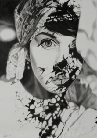 Pittura ad olio a pennello asciutto.